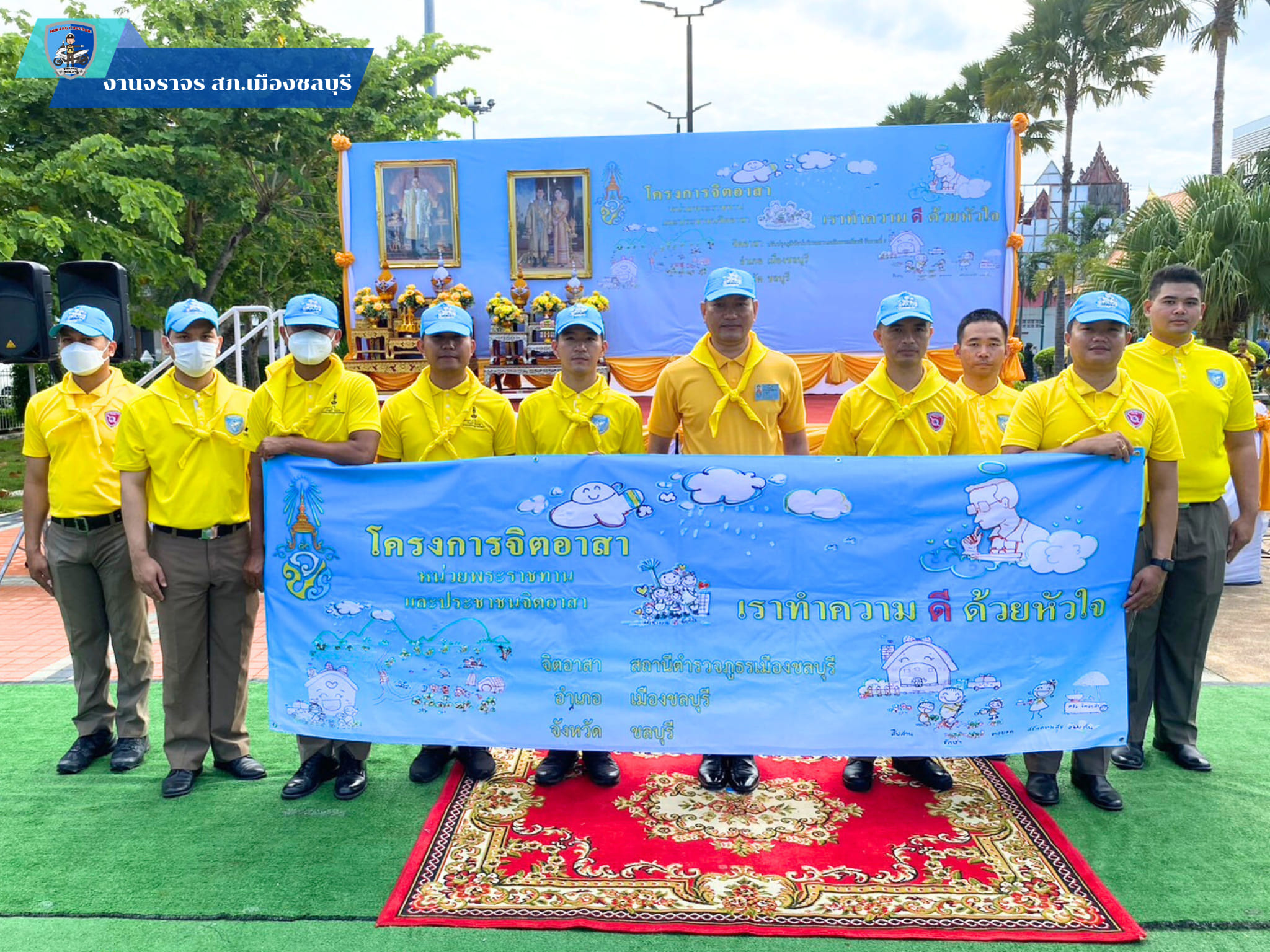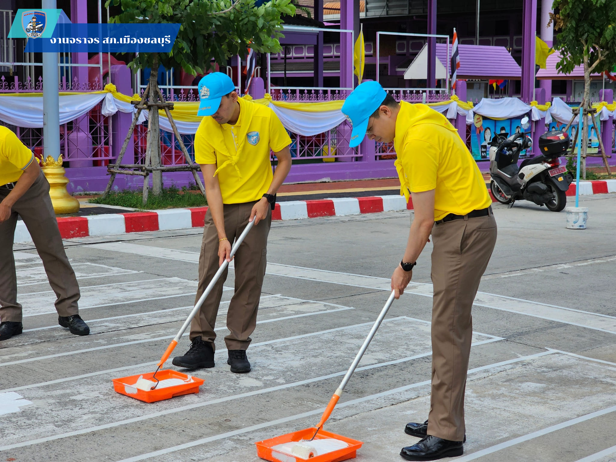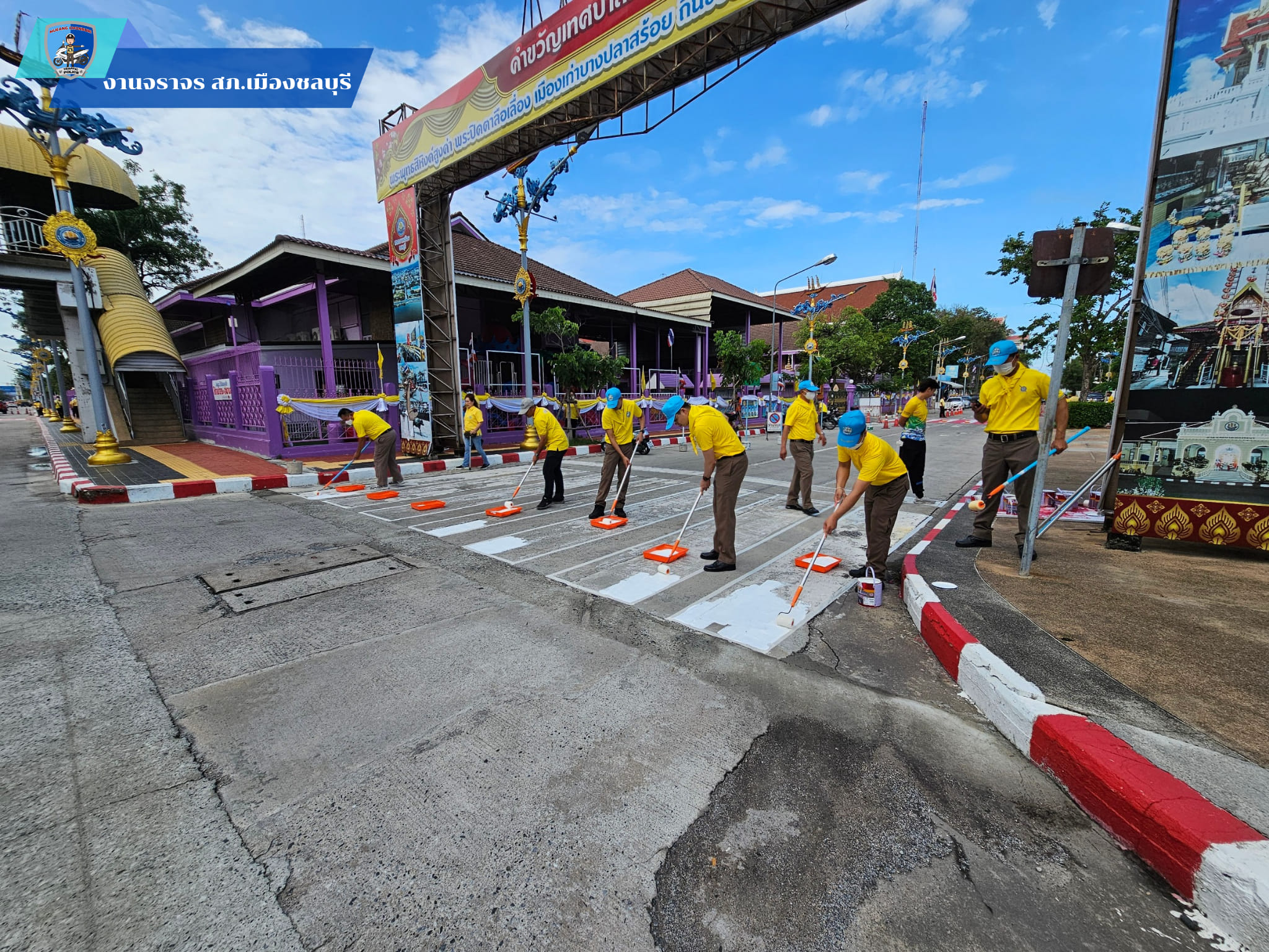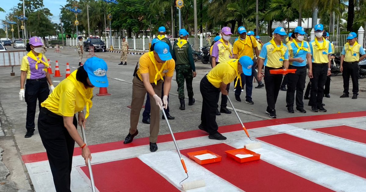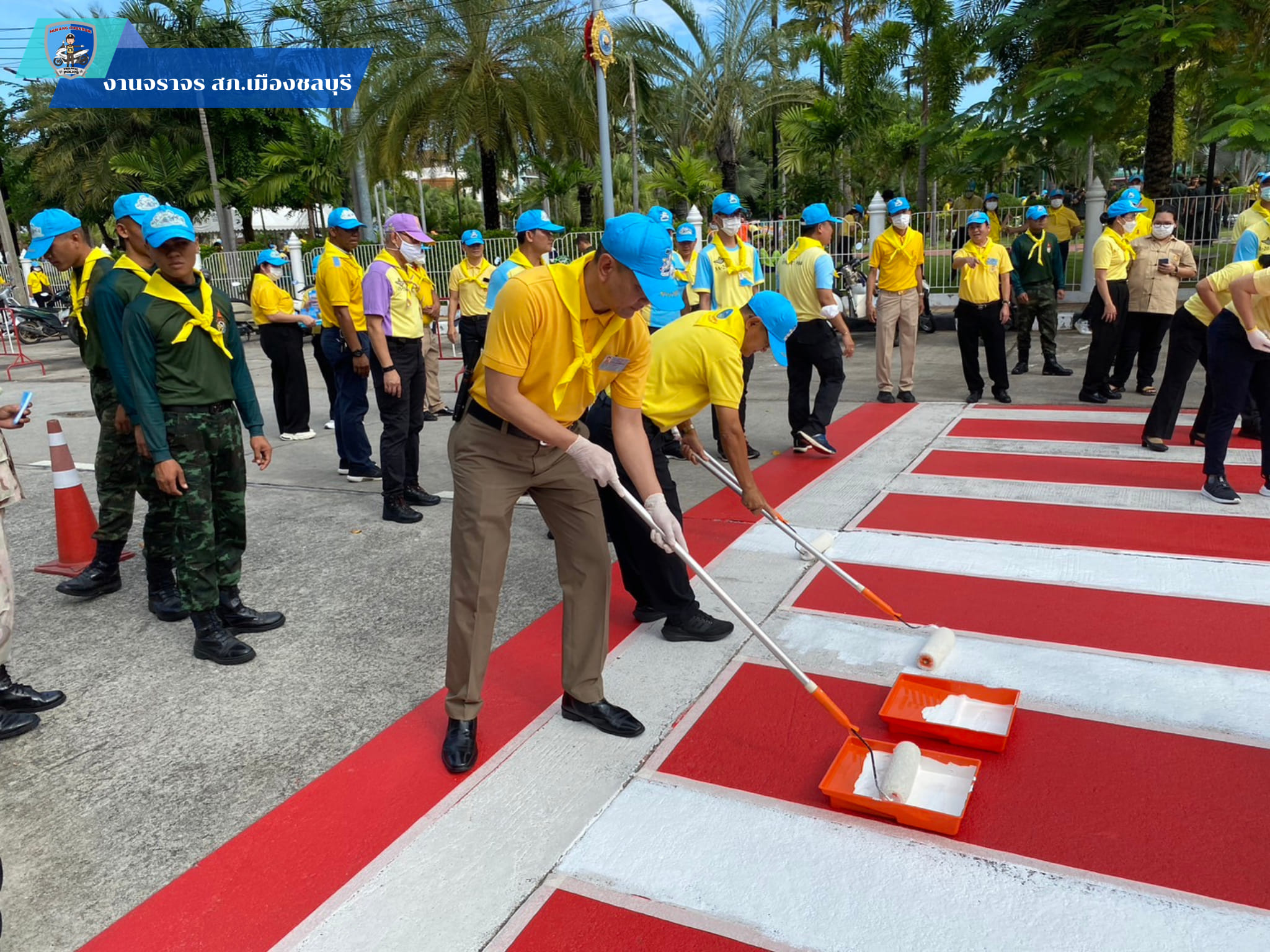 พร้อม จนท.ตำรวจ สภ.เมืองชลบุรี และ จนท.หน่วยงานราชการอื่น ร่วมภารกิจ จิตอาสาพัฒนา ทาสีตีเส้นทางม้าลาย เนืองในวันสำคัญของชาติไทย วันชาติ วันพ่อแห่งชาติ สวนเฉลิมพระเกียรติ ร.9 หน้าโรงเรียนอนุบาลชลบุรี