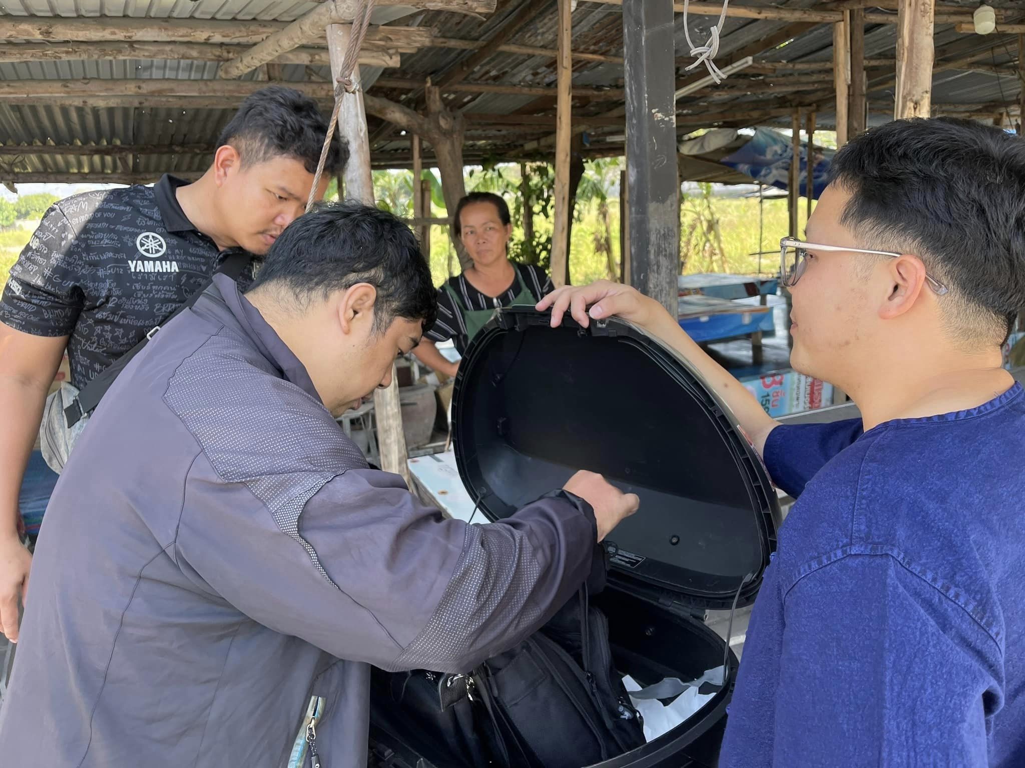 จนพบว่ากล่องเก็บของฯ ดังกล่าว ตกหล่นบริเวณแยกสุขุมวิทอ่างศิลา ต.อ่างศิลา อ.เมืองชลบุรี จ.ชลบุรี (นอกเขต สภ.เมืองชลบุรี) และ ได้มีคนเก็บไปฯ
