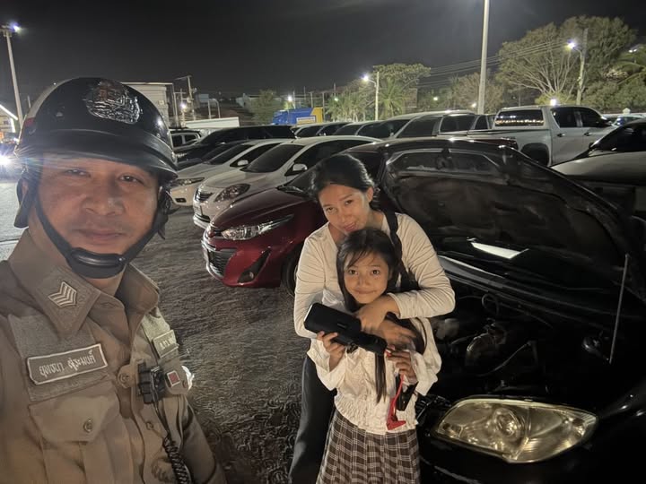 บริเวณตลาดหน้าศาล โดยใช้ พาวเวอร์แบงค์ จั๊มสตาร์ท พ่วงให้ จนสามารถใช้งานและเดินทางได้