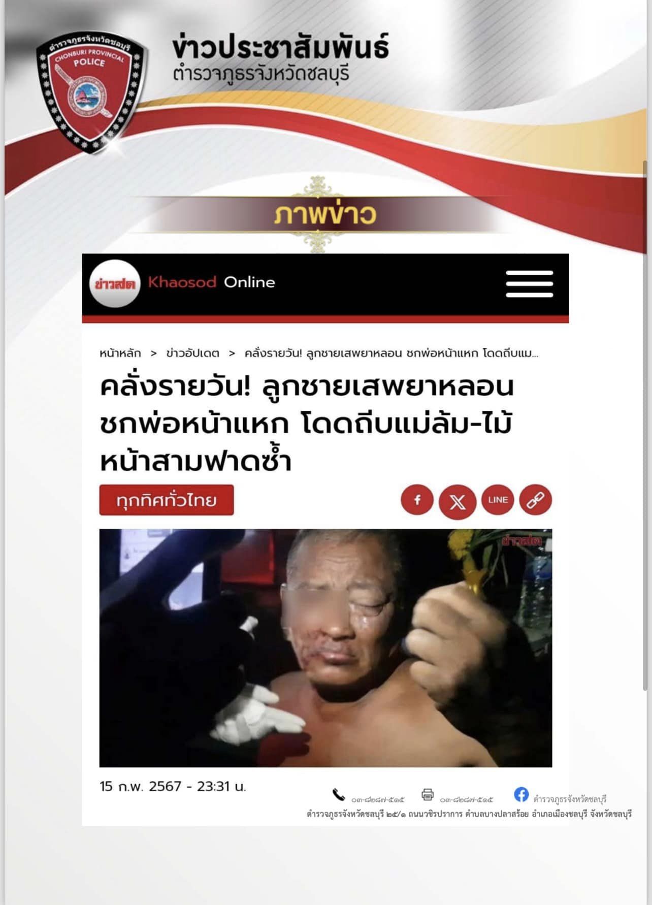 กรณีมีข่าวปรากฏในช่องทางสื่อมวลชนและสื่อออนไลน์ “คลั่งรายวัน ลูกชายเสพยาหลอนชกพ่อหน้าแหก โดดถีบแม่ล้