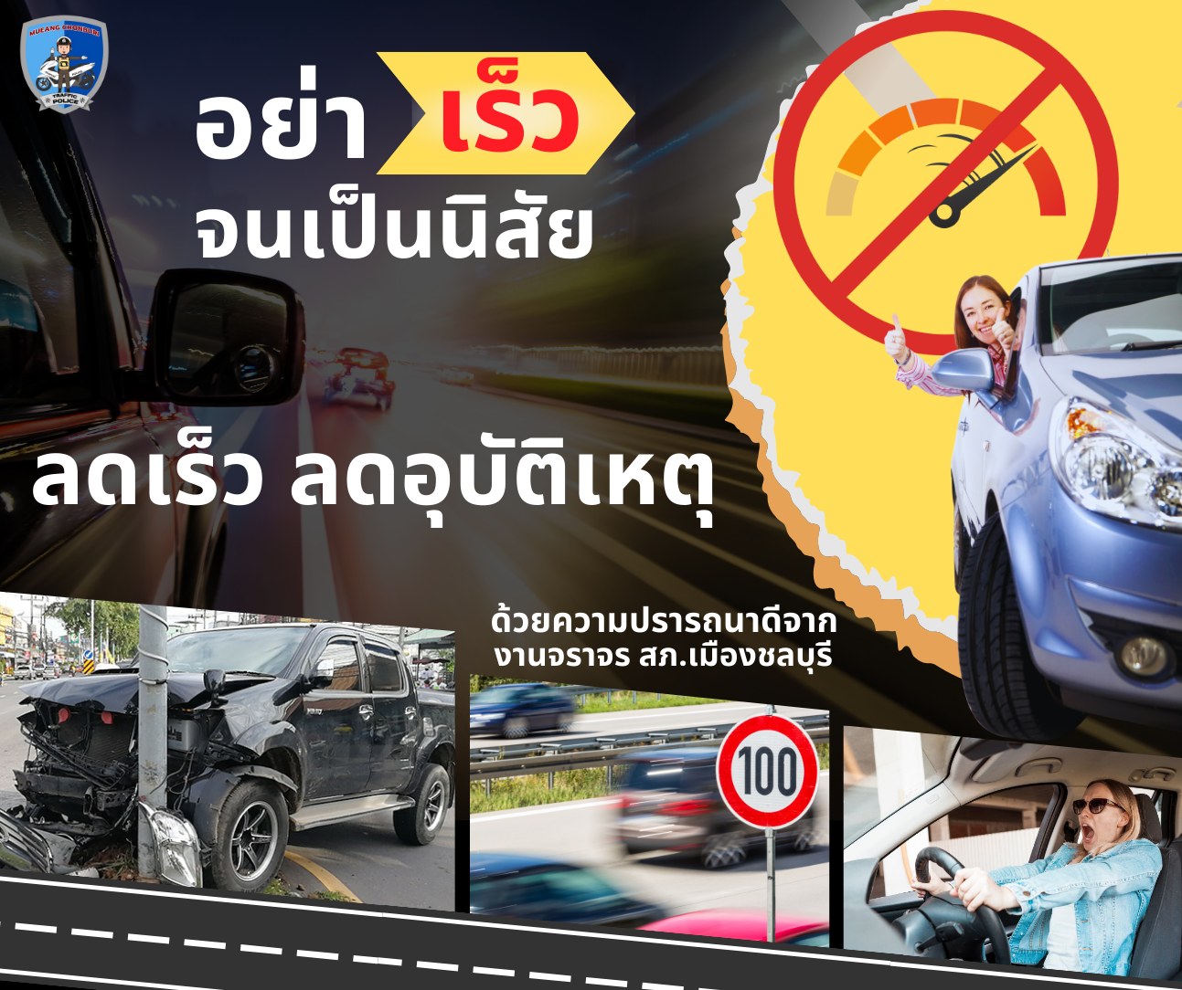 อย่า เร็ว…..จนเป็นนิสัย…..ลดเร็ว ลดอุบัติเหตุ ด้วยความปรารถนาดีจาก งานจราจร สภ.เมืองชลบุ