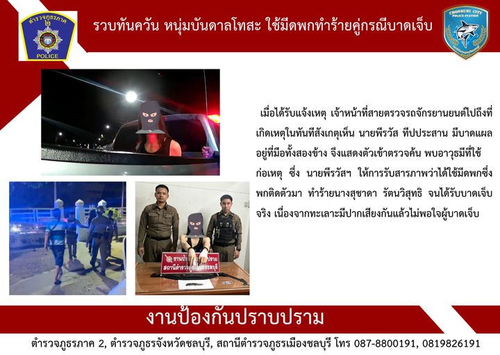 ไม่มีอะไรที่สายตรวจเมืองชลบุรีทำไม่ได้ #รวบทันควันจับทันที หนุ่มบันดาลโทสะ ใช้มีดพกทำร้ายคู่กรณีบาดเ
